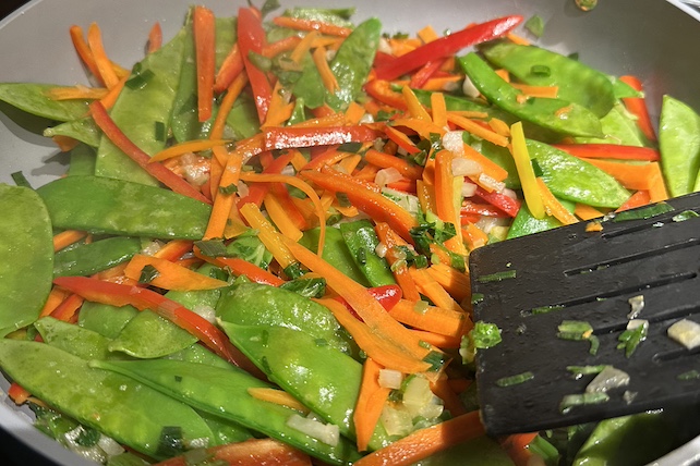 • Snow peas ~ omit for Low FODMAP. Low FODMAP can substitute snow peas with sliced radishes or thin green beans
